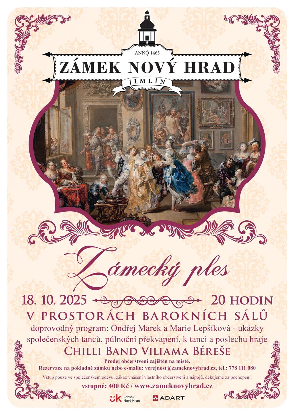 V sobotu 18.10.2025 se uskuteční na zámku Nový Hrad v Jimlíně zámecký ples v prostorách barokních sálů.